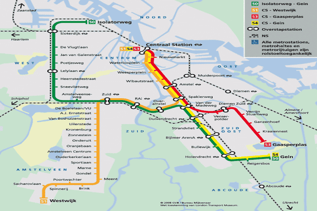 Contrairement à la plupart des villes qui disposent de ce moyen de transport, le métro d'Amsterdam est peu intéressant pour le voyageur.
